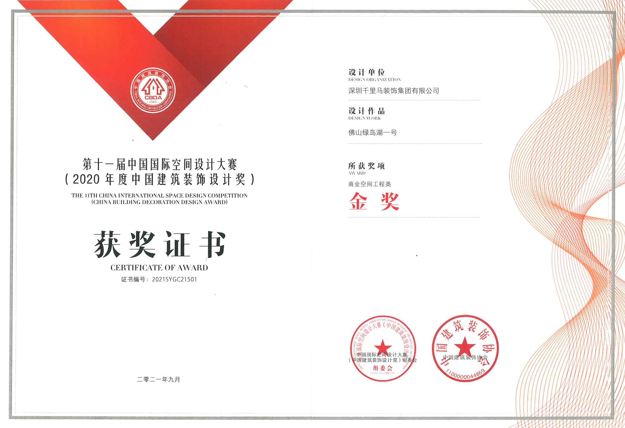 9月18日,2021中國建筑裝飾產業發展論壇暨第十一屆中國國際空間設計大賽(中國建筑裝飾設計獎)頒獎典禮在深圳福田圓滿落幕。