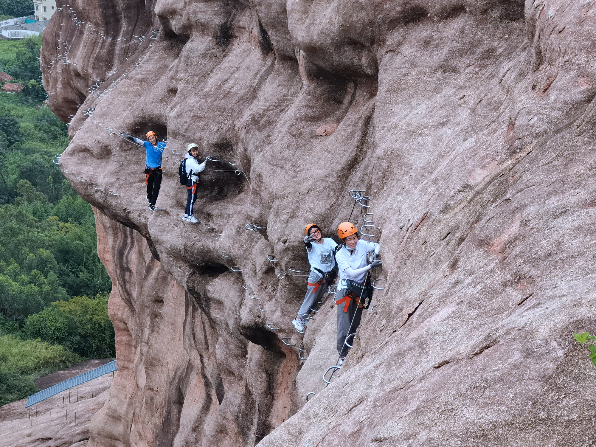 飛拉達(dá)攀巖,全程長達(dá)500米,垂直高度高達(dá)108米,全程攀巖需要2到3小時(shí),除了要克服高度的恐懼,還需保持穩(wěn)定的心態(tài)和持久的耐力。