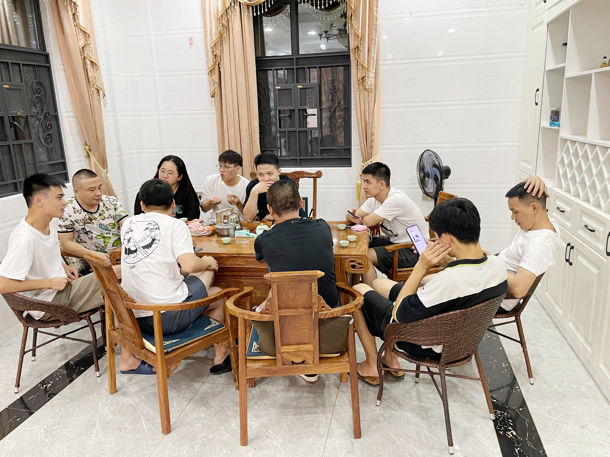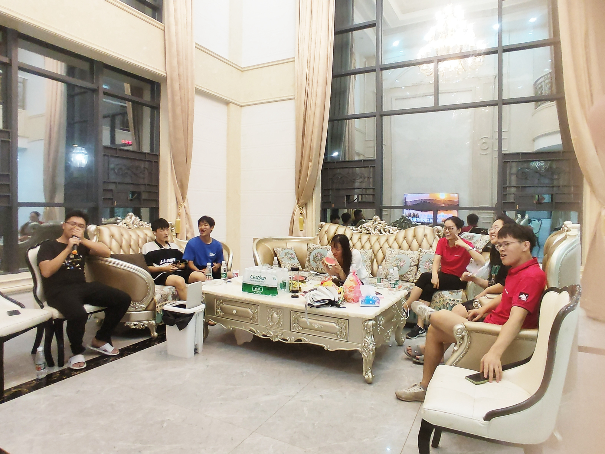我們擁有一個大大的別墅房子。那里有懸空吊頂的水晶燈、沉靜古樸的茶桌,還有盡情搖擺的KTV和尚未踏足的棋牌室。燈光流動,大家敞開心扉,或深情吟唱,或靜靜聆聽,或吃茶談心聊工作,因為一切都有,所以一切都可!