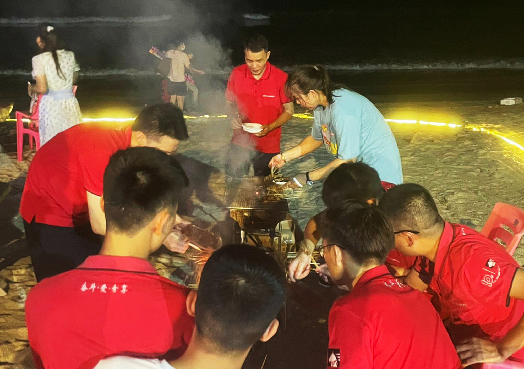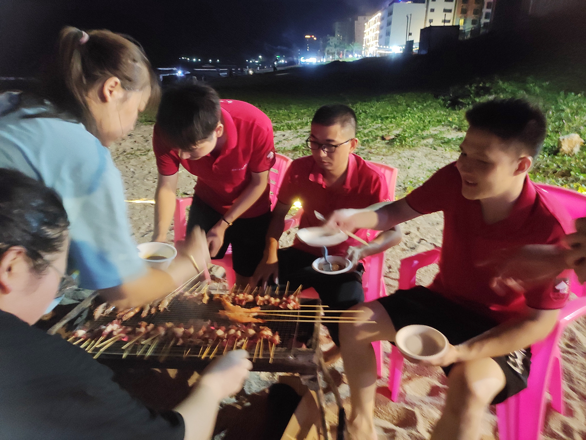 激動的戶外拓展過后,已經是傍晚時分,是時候準備一頓別樣的晚餐了。于是三五人洗菜切菜,八九人圍坐穿串,往日嚴肅少言的領導,這一刻和大家一樣,都是穿串的“手工藝人”。