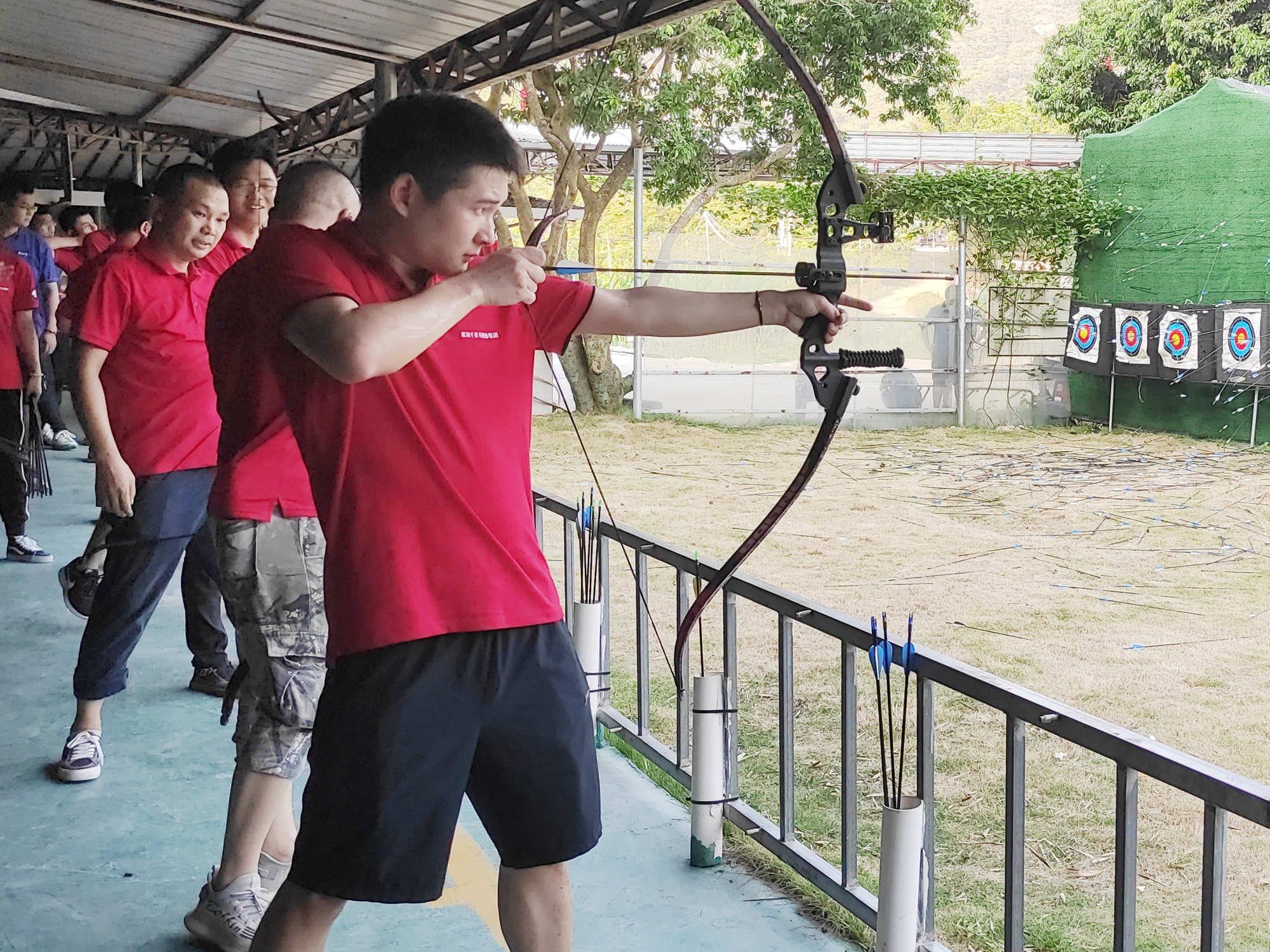 CS真人對戰之后,是距離CS基地10米遠處的射箭活動。蘇軾說,“會挽雕弓如滿月”,當真正接觸到箭之后,我們才明白,這如滿月的箭中包含了多少手臂肌肉中分泌的乳酸。