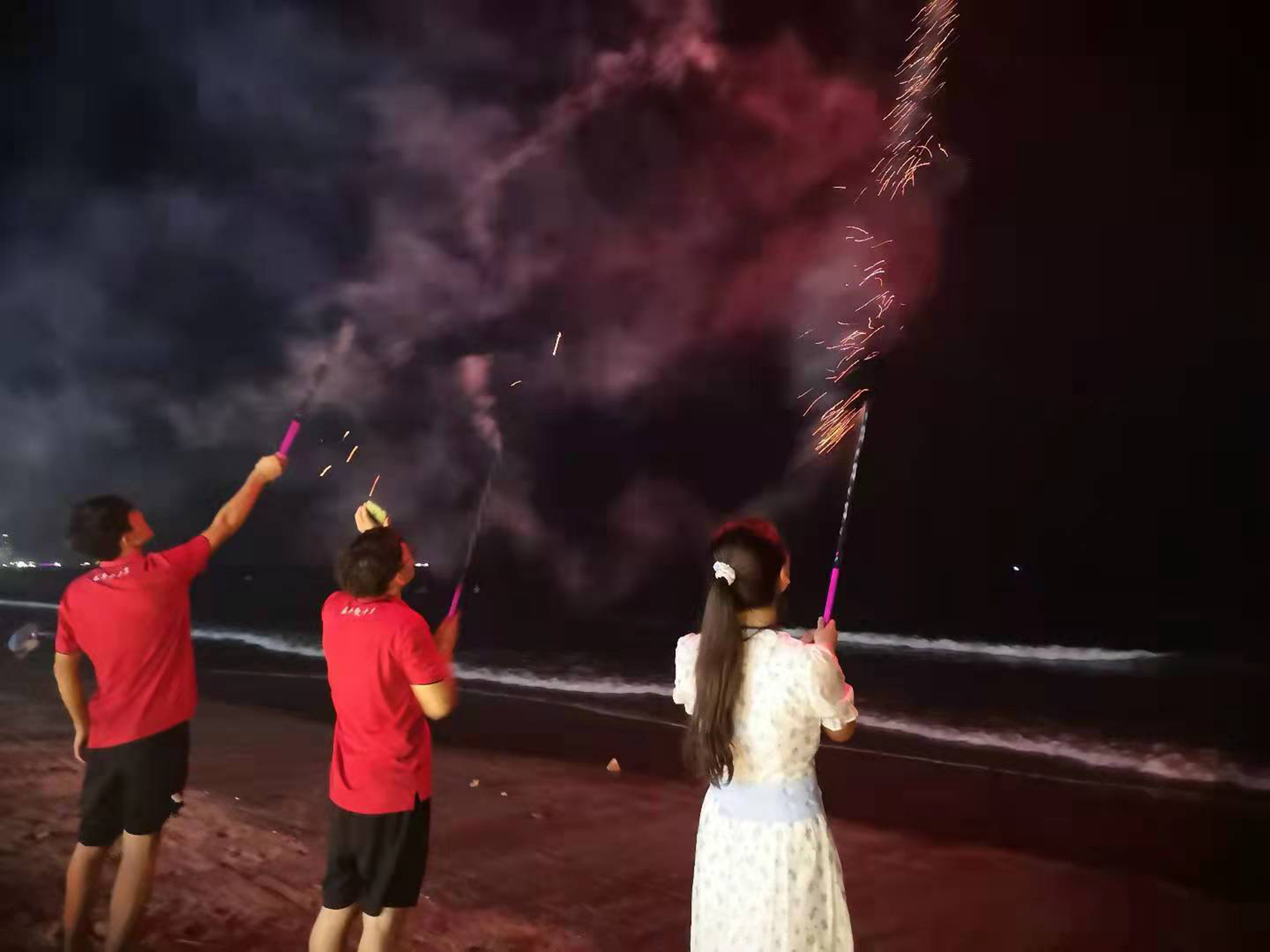 當煙花的背景從疊疊幢幢的房子切換成無邊無際的黑夜和此起彼伏的浪濤,當放煙花的人從形單影只到三五成群,所有的塵雜瑣事在那一刻都隨浪濤走遠。而此刻與我們一起放煙花的人,一定也會與我們一起共同燦爛!