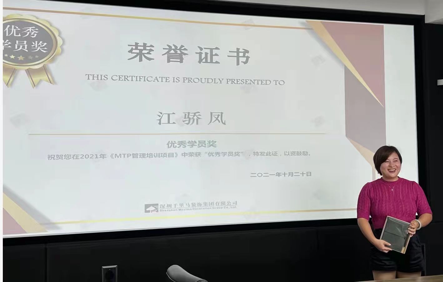 “學習是進步的階梯,終身學習才是有意義的生命...”是李向東董事長在今年MTP管理才能發展培訓班開班時送給學員們的一句話,這也是江經理一直在踐行的價值信條,集團給與的每一次學習機會,江經理都積極參與,認真對待,努力提升自己。